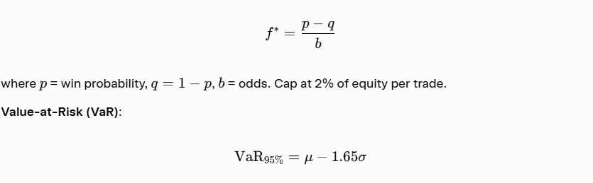 Circuit breakers: Halt trading if 5% daily loss or correlation spike across portfolio.